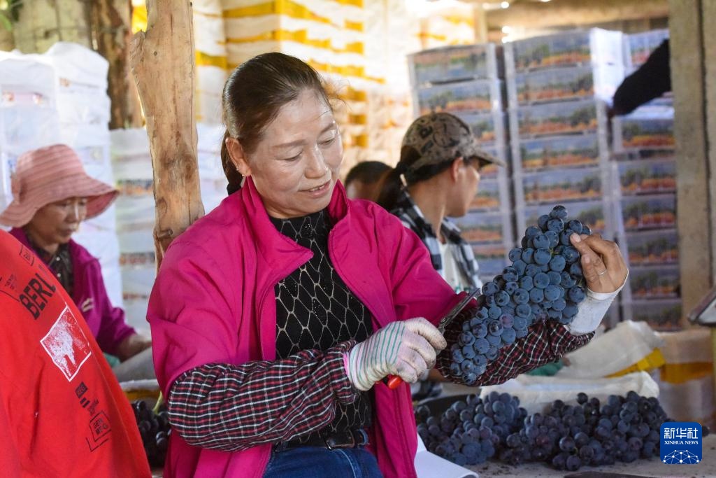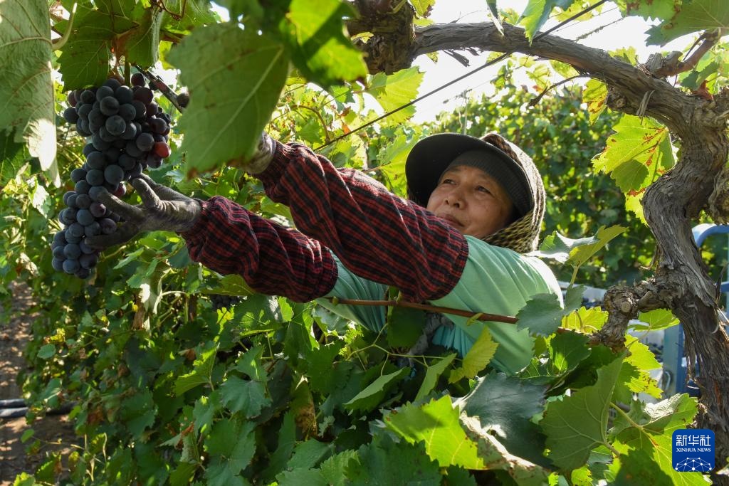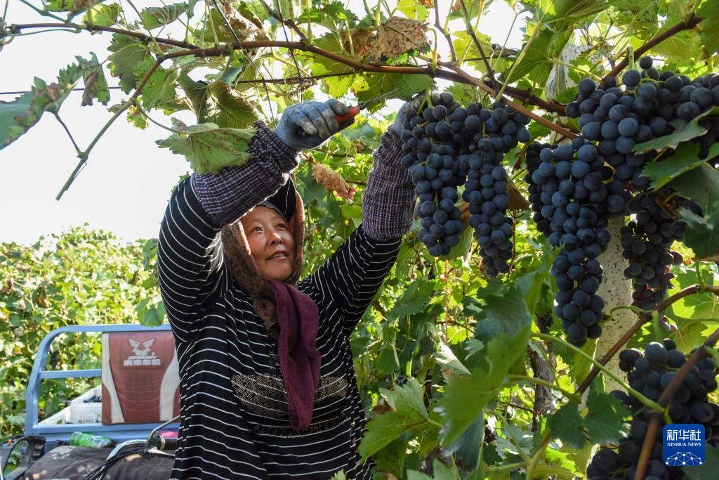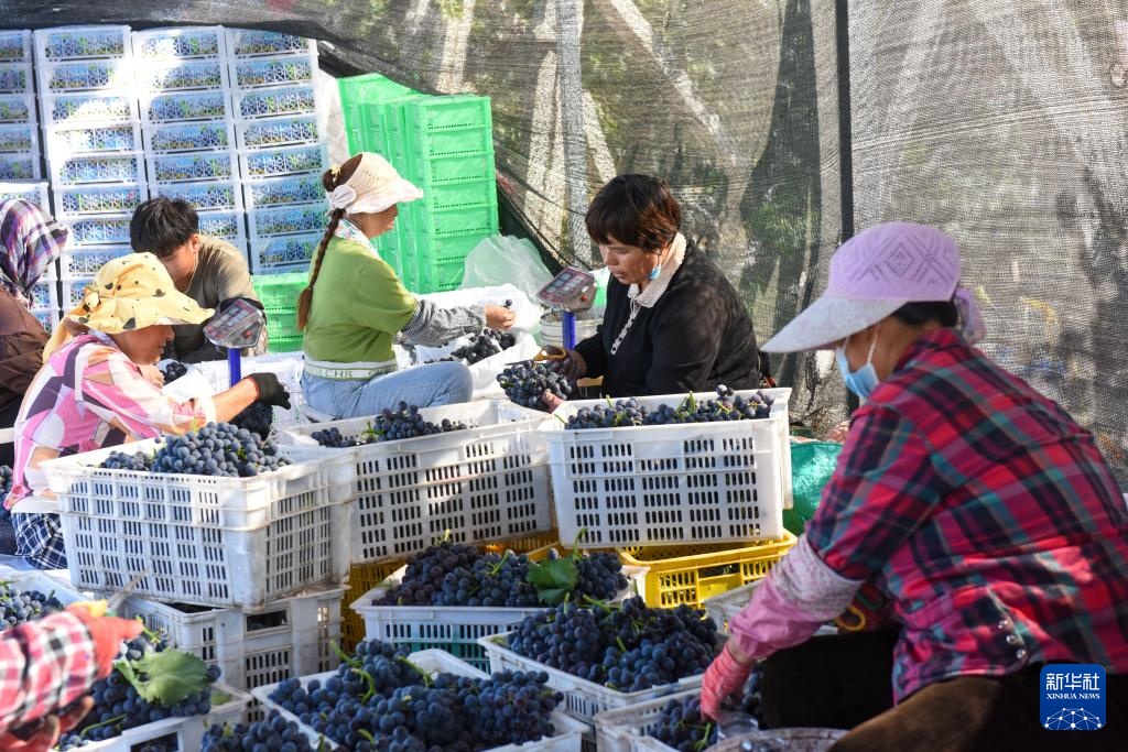 眼下,新疆生产建设兵团双河市双桥镇的葡萄陆续成熟,迎来采摘黄金期,种植户抢抓农时采收葡萄。