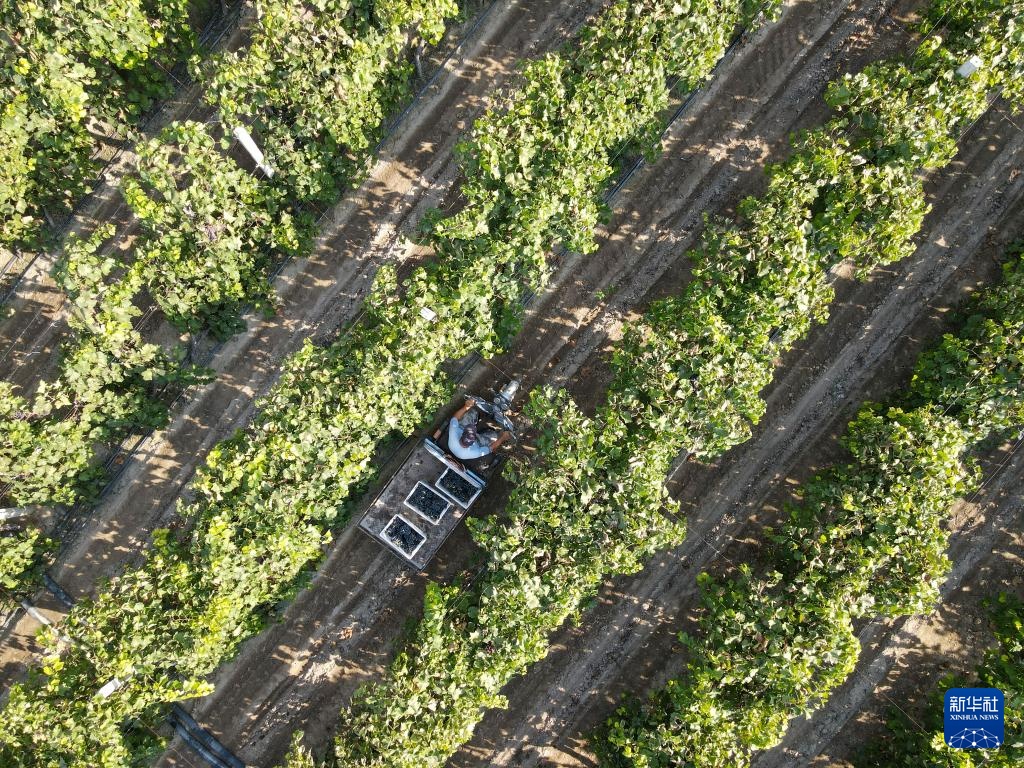 9月6日,果农在运送葡萄(无人机照片)。