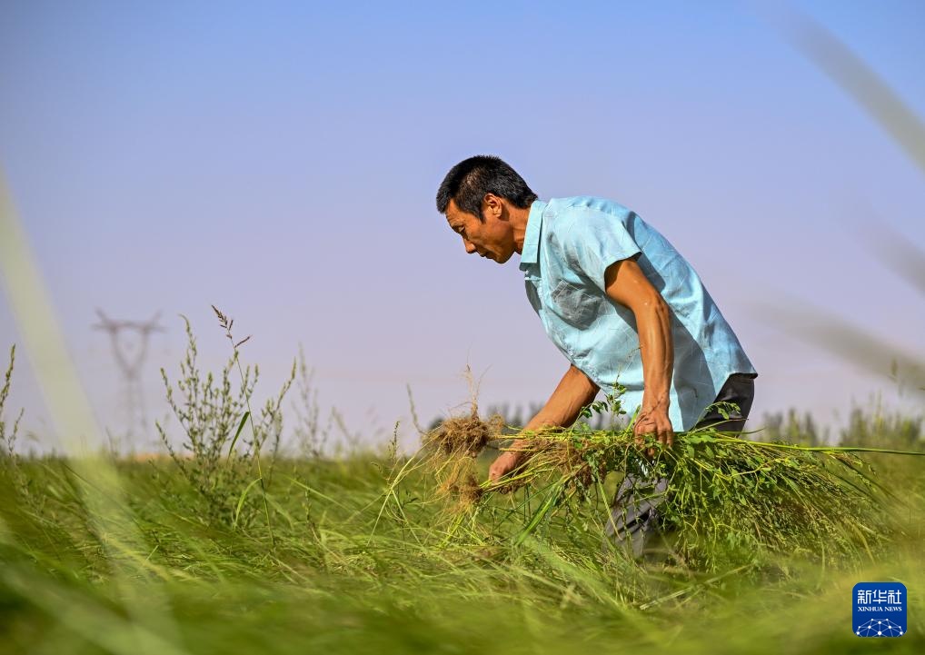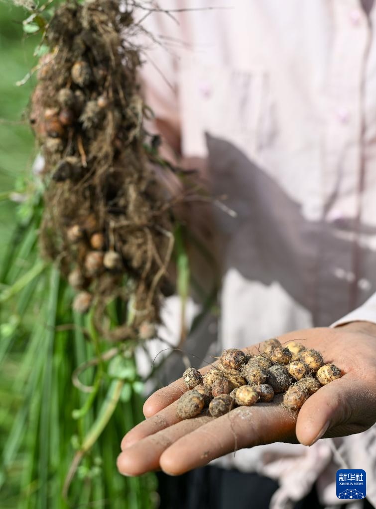 新疆生产建设兵团第三师图木舒克市兴安镇位于塔里木盆地西南部,辖区曾经是茫茫沙海。近年来,当地发展以油莎豆种植加工为支柱的农业产业,先后建立油莎豆良种繁育基地和精深加工产业园区。油莎豆在防风固沙的同时,帮助百姓增收致富。