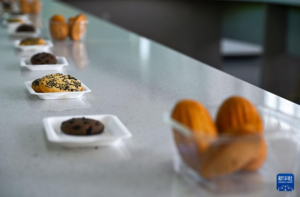 这是9月6日在兴安镇一家油莎豆加工企业拍摄的用油莎豆制成的糕点。