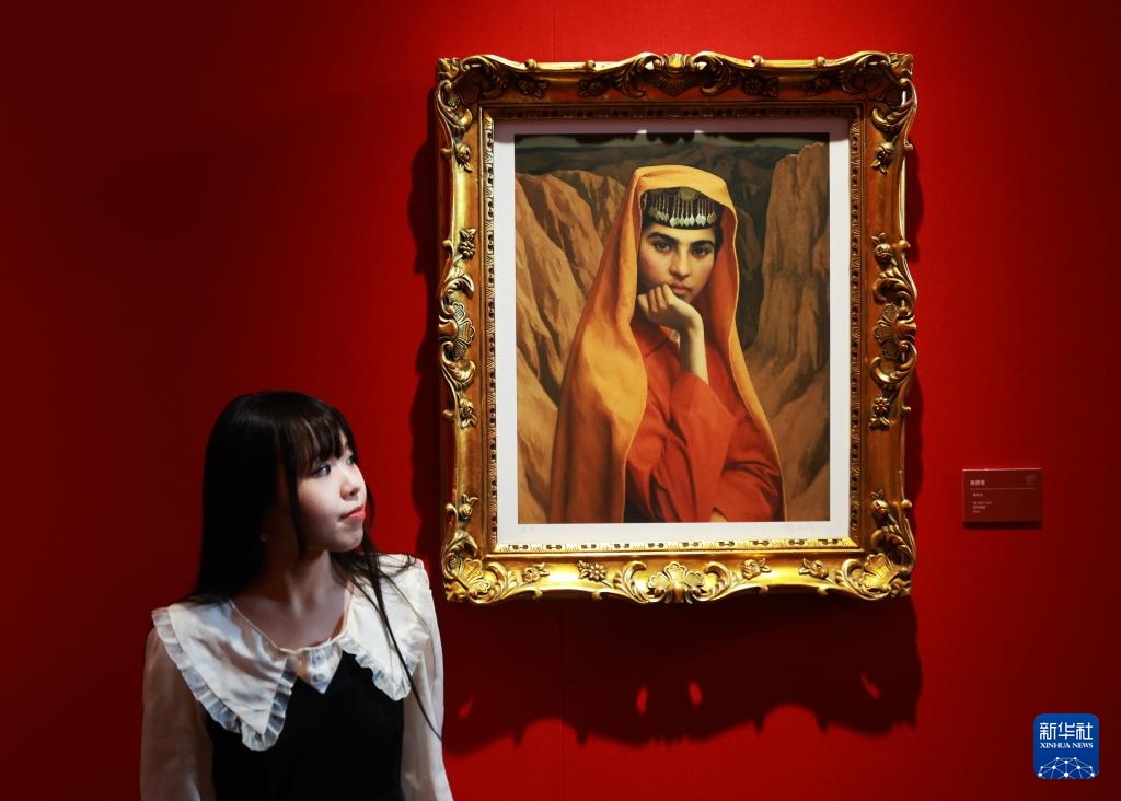9月6日,一名女孩在一幅油画肖像前参观。