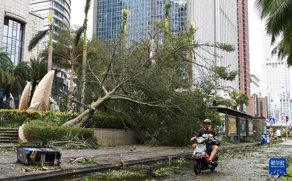 9月7日,海口市滨海大道上的树木被风吹倒。