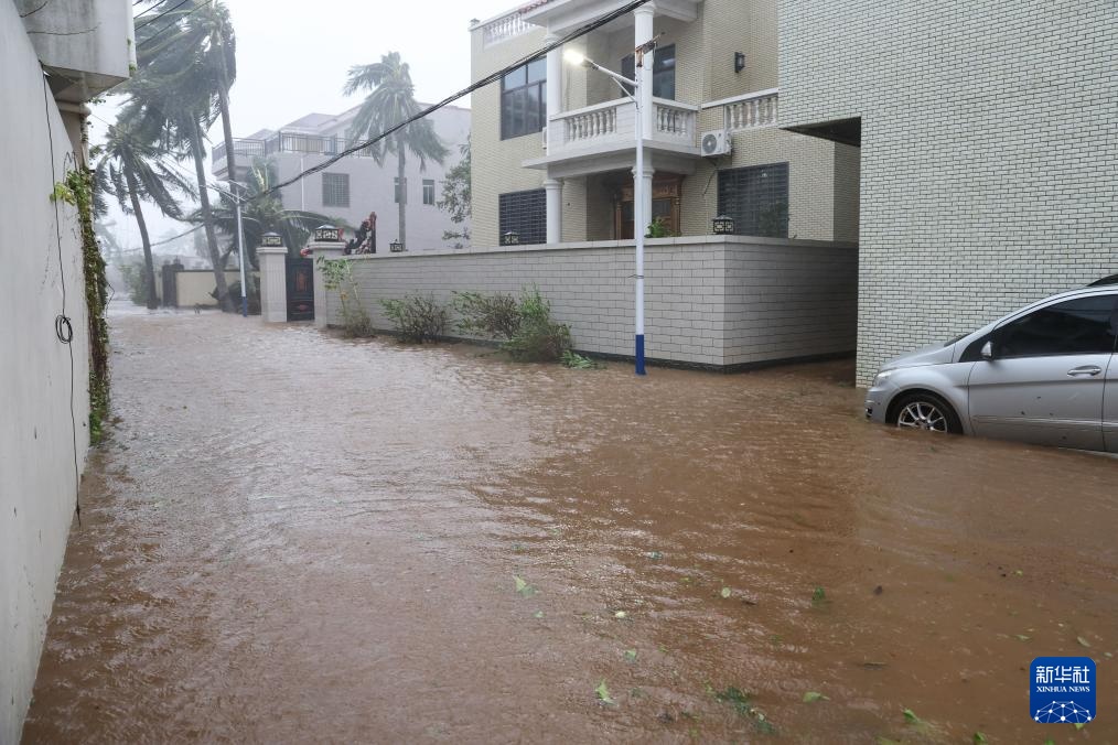 9月7日,在海南文昌市铺前镇,一些海边养殖场的店主在焦急地等待道路疏通。