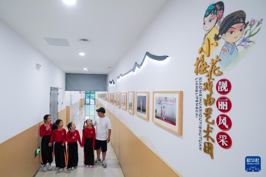 2021年,曾是昆曲演员的周杰成为昆山石牌中心小学校的一名昆曲专职教师。在学校训练房内,他指导小学员们练习昆曲基本功,在“唱、念、做、打”上下功夫,一举手一投足孩子们练得有板有眼。