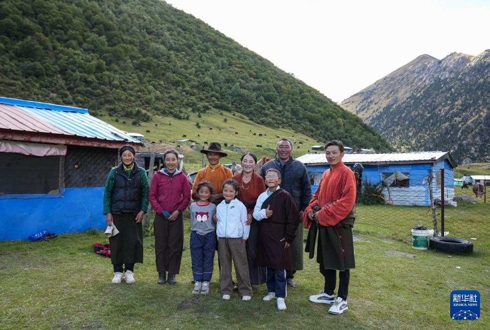 贡乔热旦和家人在夏季牧场合影(9月4日摄)。