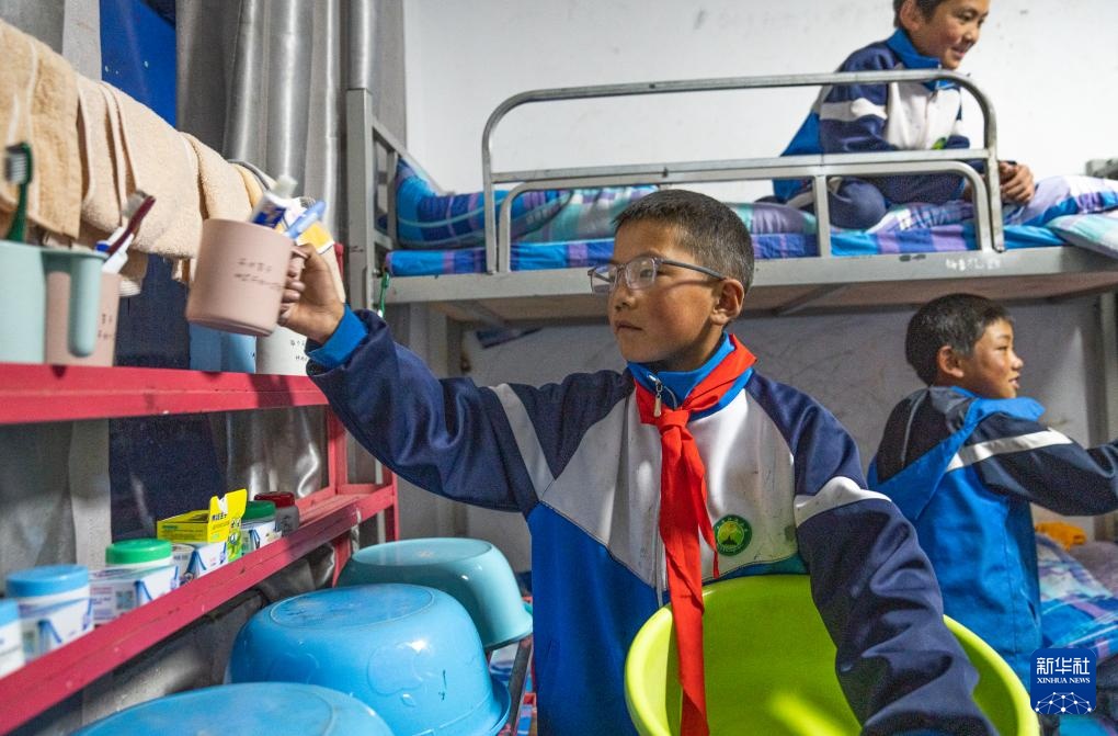 在娘蒲乡中心小学宿舍里,贡乔热旦准备洗漱,所有洗漱用品都是免费的(9月3日摄)。