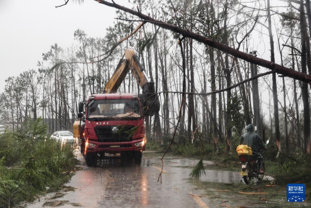 9月7日,在海南省文昌市翁田镇,工程车辆在疏通道路。