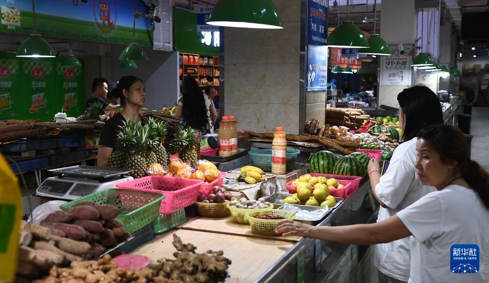9月7日,市民在海口市金贸文华农贸市场采购。