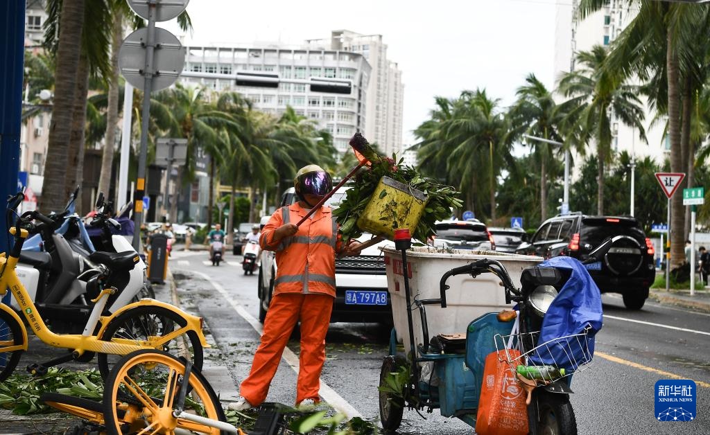 9月7日,海口市金贸西路已基本完成清理,市民陆续出行。