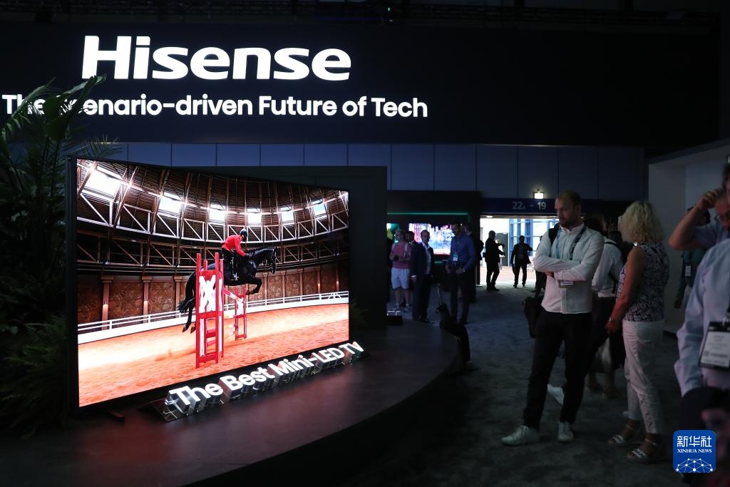 9月6日,在德国柏林国际消费电子展海信展区,参观者观看新款Mini LED电视。