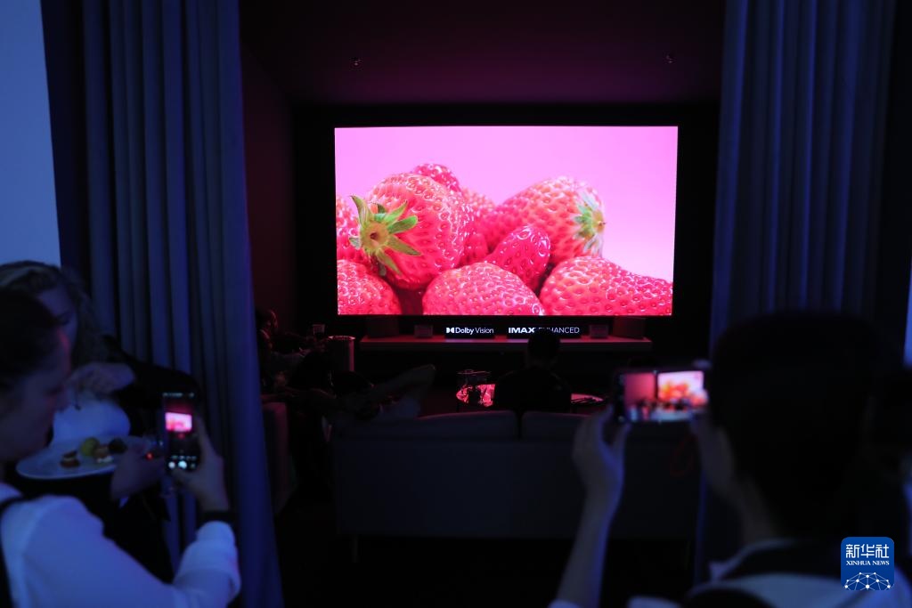 9月6日,在德国柏林国际消费电子展极米科技展区,参观者拍摄新款投影产品。