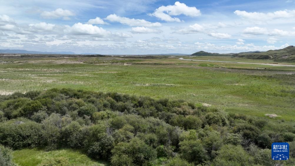 9月4日拍摄的玛曲县一处经治理后复绿的沙化退化草场(无人机照片)。