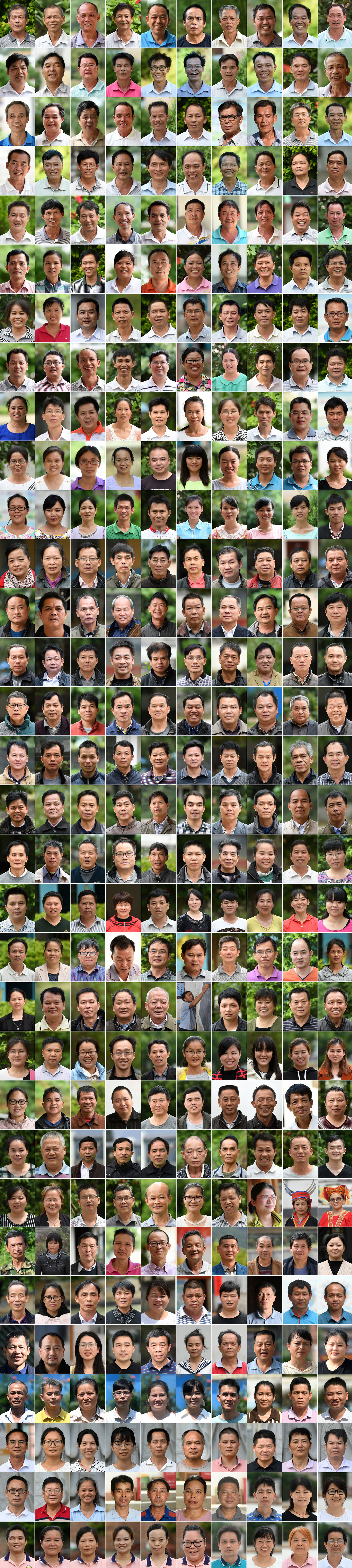 这是2012年至今拍摄的广西20多个县区130多所大山学校320名教师的肖像,其中有不少是“80后”“90后”教师(拼版照片)。