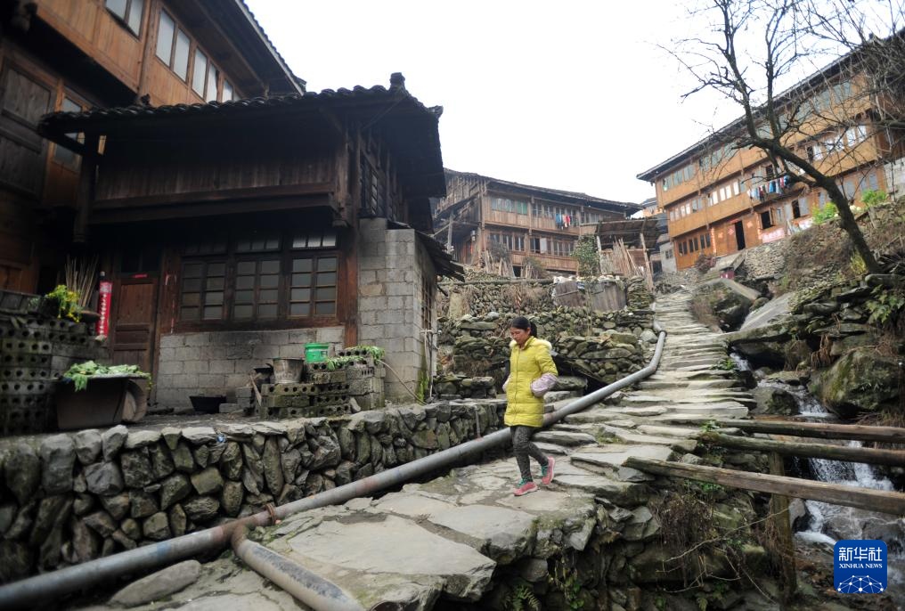 在广西龙胜各族自治县龙脊镇小寨村,“85后”老师赖丁来走在去学校的路上(2014年3月13日摄)。