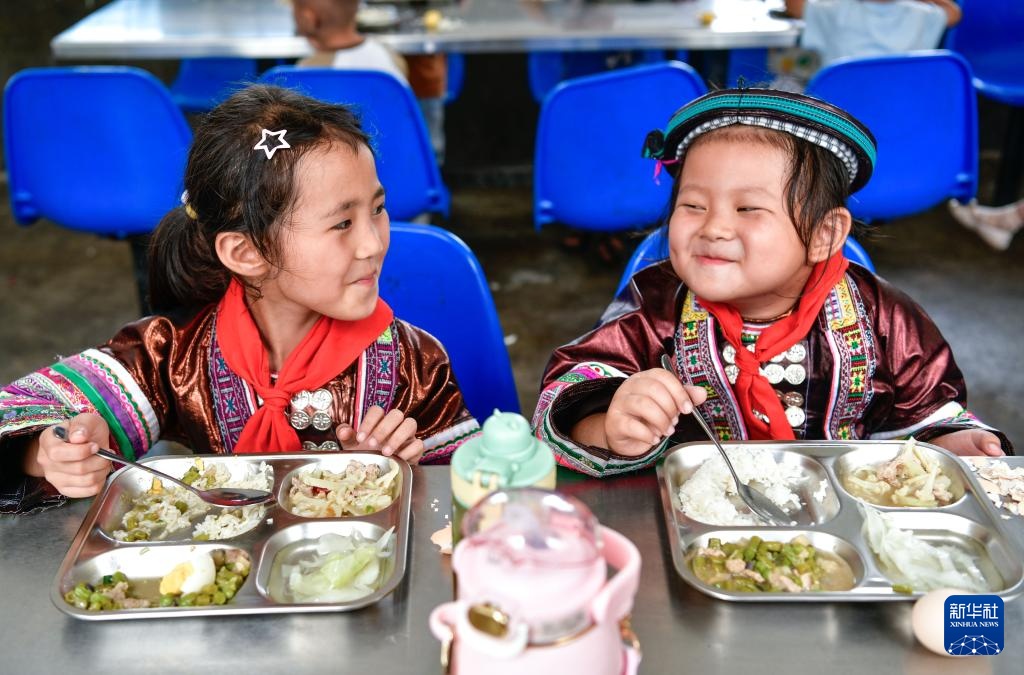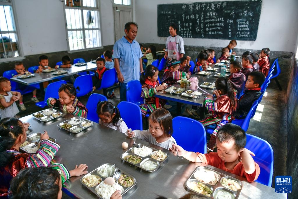 中寨教学点的学生在吃午饭(9月6日摄)。