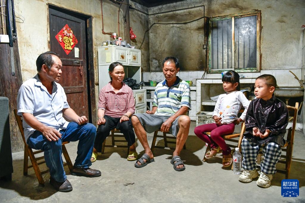 孟荣达(左一)在学生家中家访(9月5日摄)。