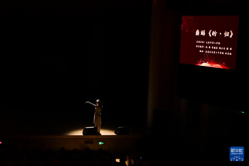 幕布拉开,灯光亮起,舞台角落的赵静做出开始手势,太原市聋人学校舞蹈队的孩子们翩翩起舞,博得阵阵掌声。