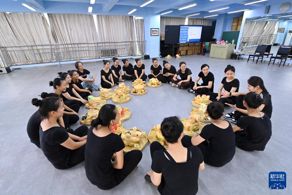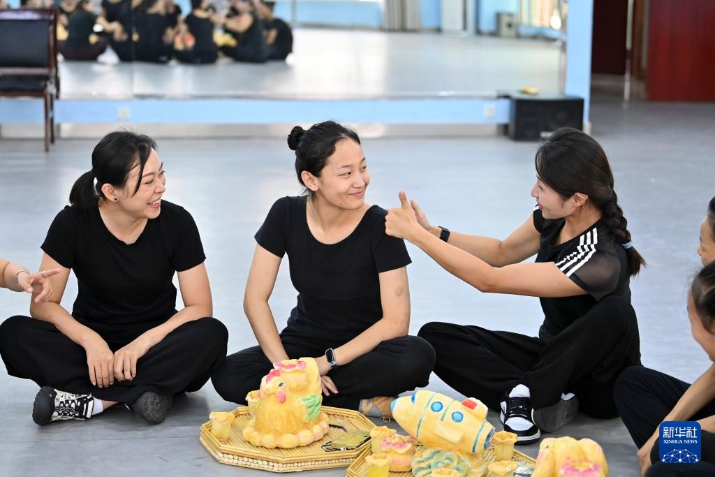 赵静(前排右二)在太原市聋人学校指导学生练习舞蹈(8月31日摄)。
