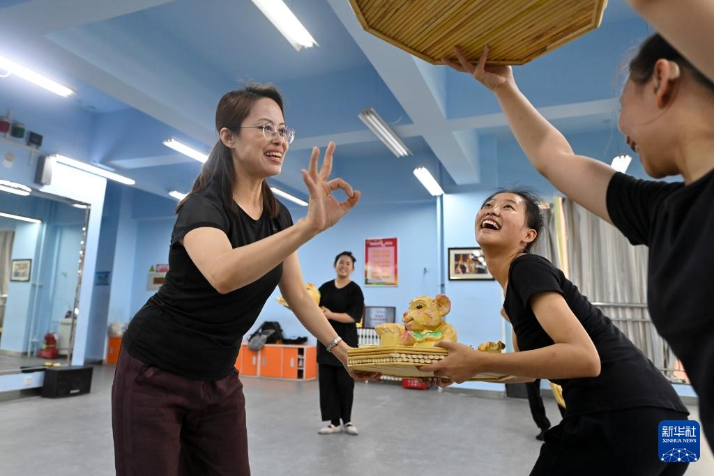 赵静(左一)在太原市聋人学校指导学生练习舞蹈(8月31日摄)。