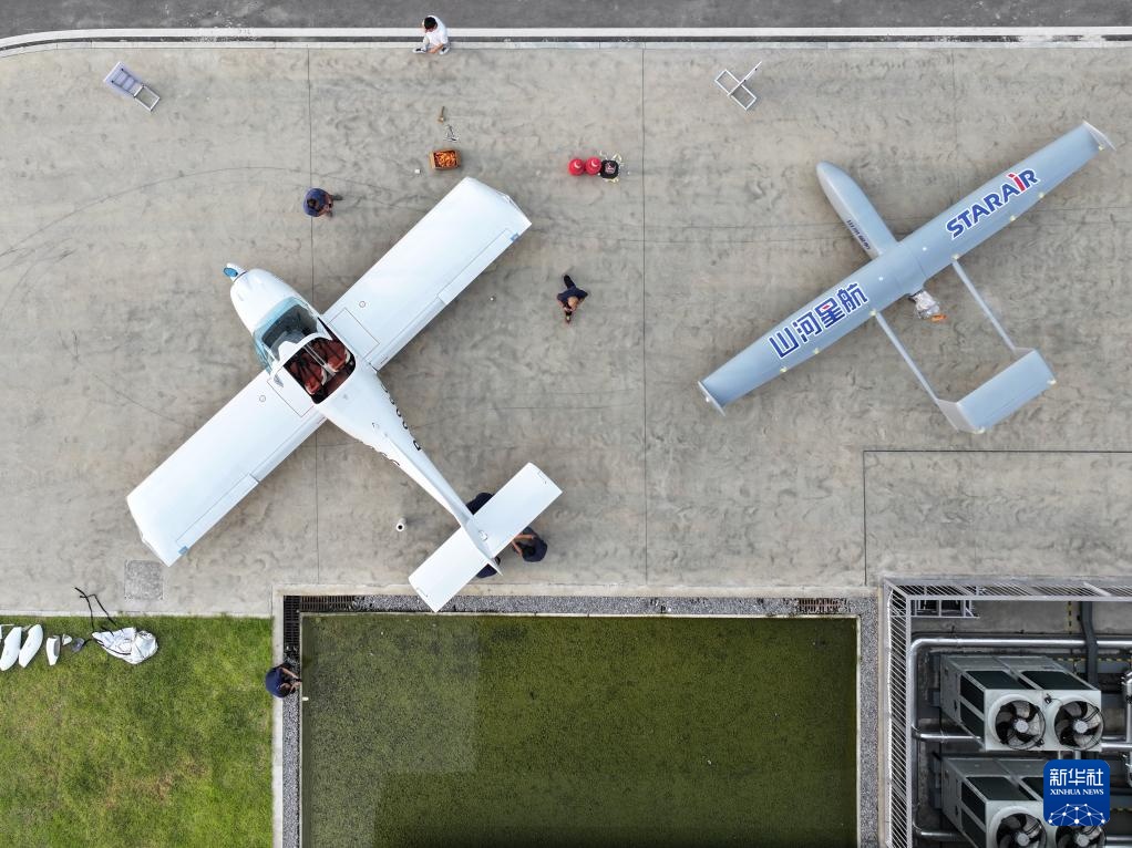 这是9月9日拍摄的2024互联网岳麓峰会创新成果展外景一角(无人机照片)。