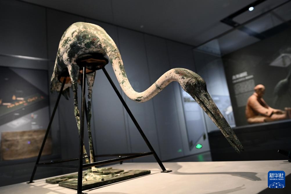 这是在秦始皇帝陵博物院展出的青铜鹤(9月8日摄)。