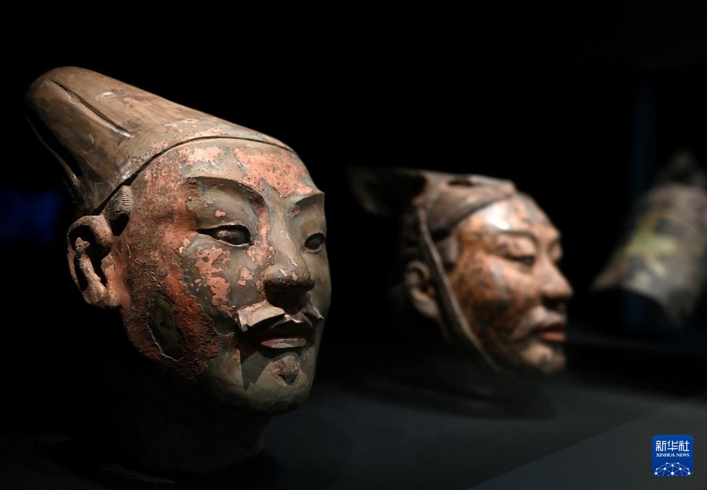 这是在秦始皇帝陵博物院展出的彩绘俑头(9月8日摄)。