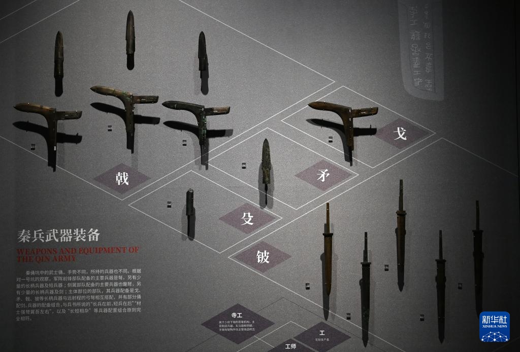这是在秦始皇帝陵博物院展出的秦兵武器装备(9月8日摄)。