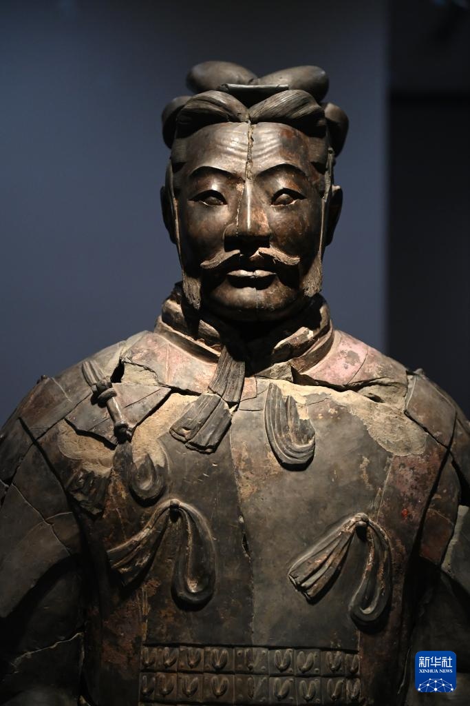 这是在秦始皇帝陵博物院展出的高级铠甲军吏俑(9月8日摄)。