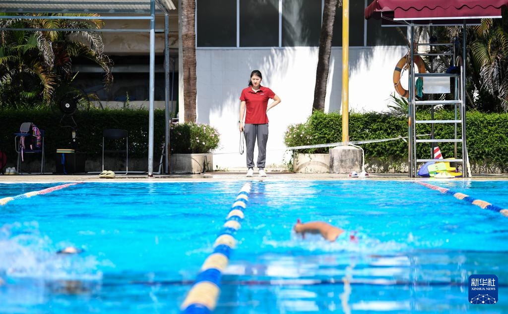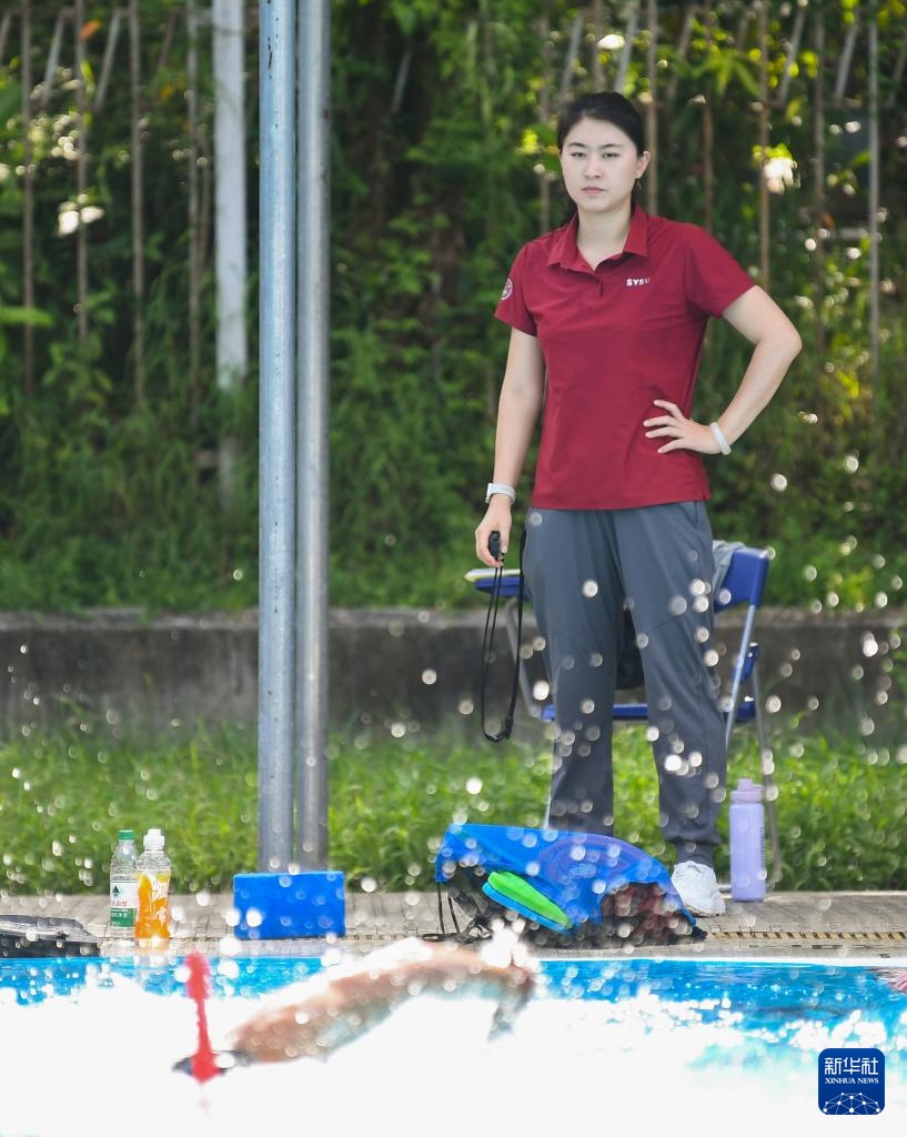 焦刘洋在中山大学游泳馆指导学校高水平游泳队队员训练(2024年9月5日摄)。