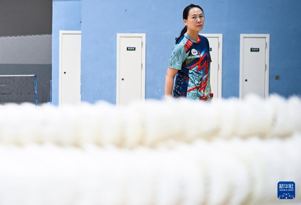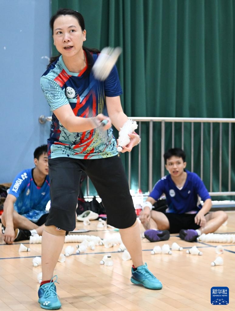 张洁雯在中山大学体育馆羽毛球场指导学校羽毛球队队员训练(2024年9月5日摄)。