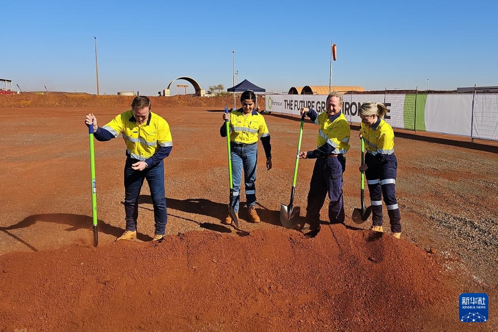 8月16日,在位于西澳大利亚州皮尔巴拉地区的克里斯默斯克里克矿区,澳大利亚福德士河集团执行董事长安德鲁·福里斯特(右二)参加绿色铁素项目奠基仪式。