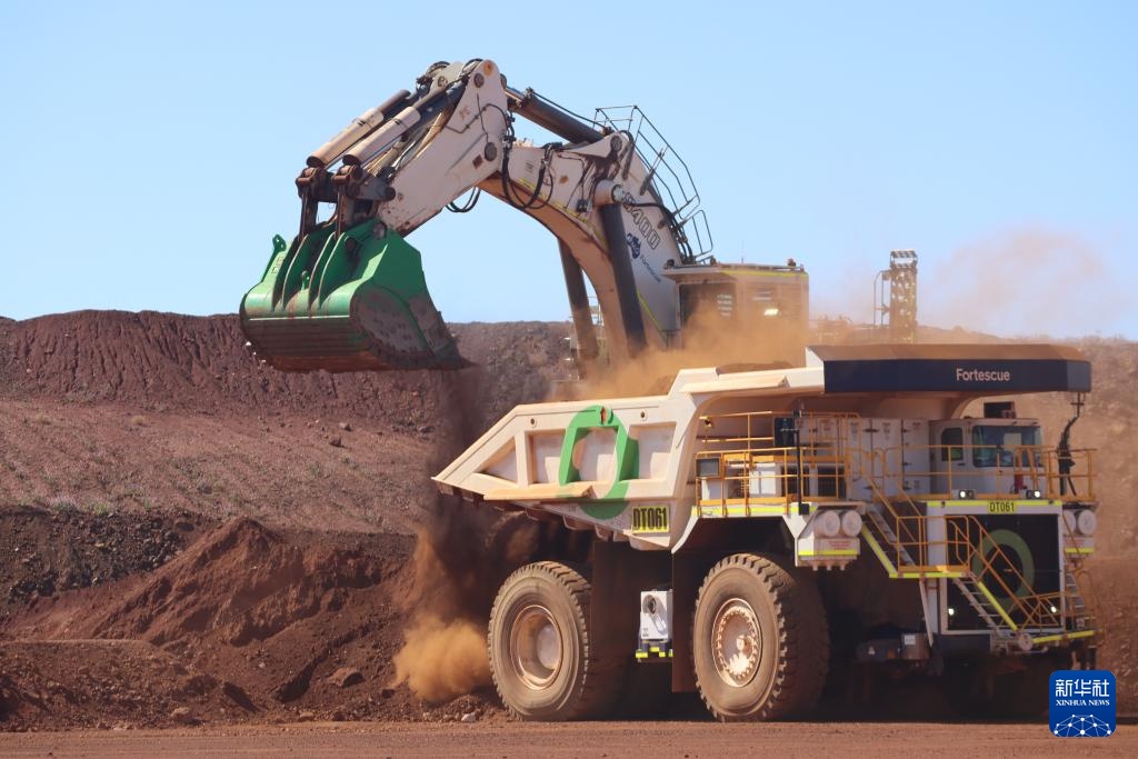 8月16日,在位于西澳大利亚州皮尔巴拉地区的克里斯默斯克里克矿区,澳大利亚福德士河集团的新能源挖掘机和重卡在测试配合作业。