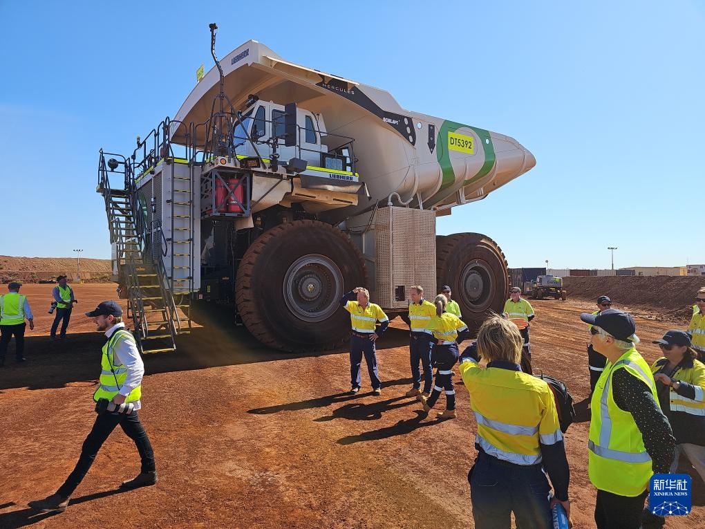 8月16日,嘉宾和媒体记者在澳大利亚福德士河集团位于西澳大利亚州皮尔巴拉地区的克里斯默斯克里克矿区参观。