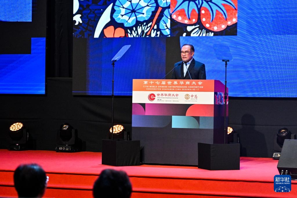 9月10日,在马来西亚吉隆坡,马来西亚总理安瓦尔出席第十七届世界华商大会开幕式。