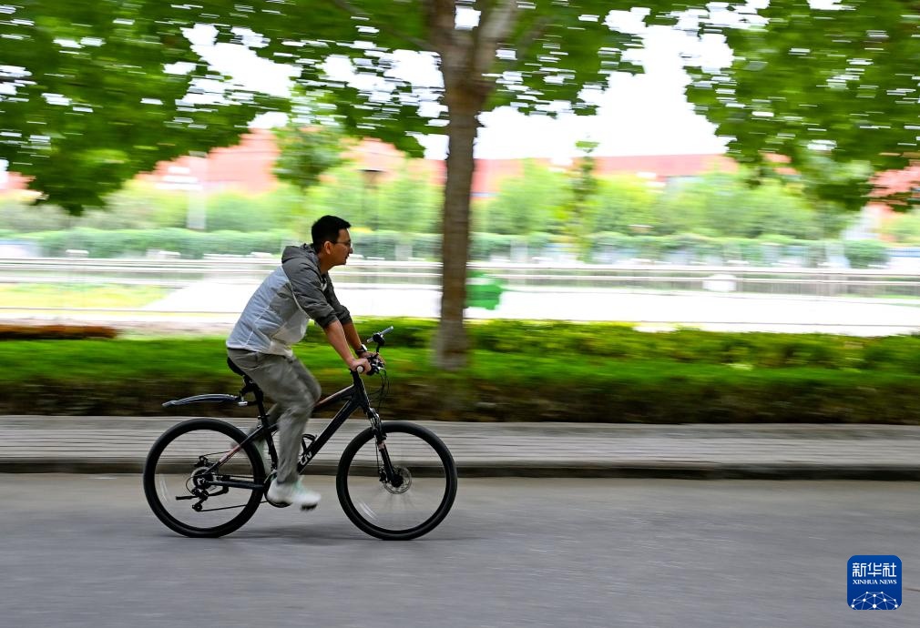 9月10日,李斌傲课后骑自行车锻炼。