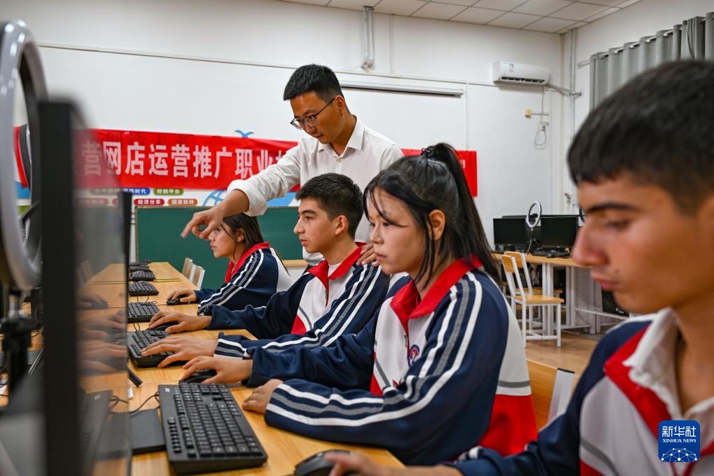 李斌傲负责教授电子商务专业课程。对于新疆的孩子而言,这门课程是连接外界、拓宽优质新疆产品销售渠道的一座桥梁。他不仅在课堂上传授知识,更时常深入基层,为乡亲们提供培训,帮助他们拓展市场。