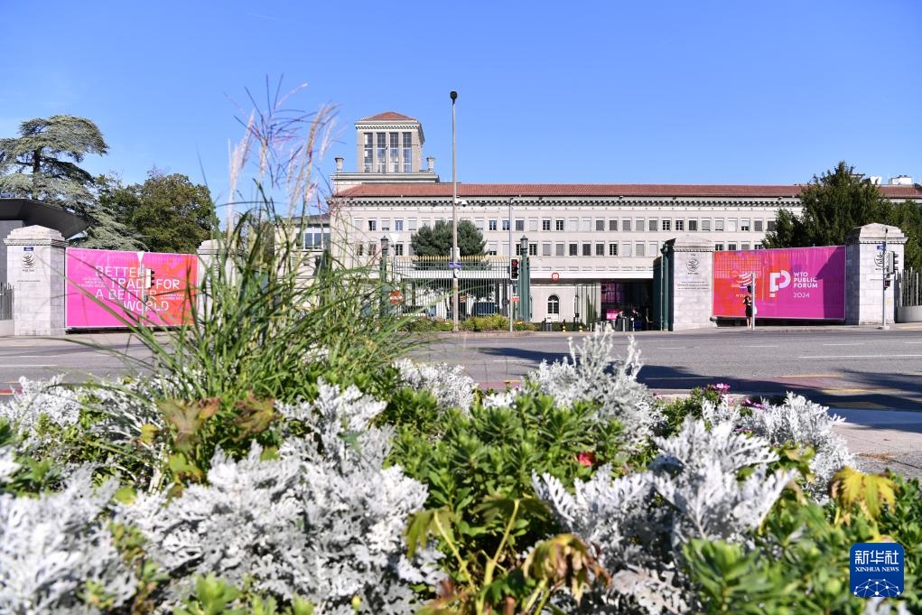 这是9月10日在瑞士日内瓦世界贸易组织总部拍摄的世贸组织2024年公共论坛标识。