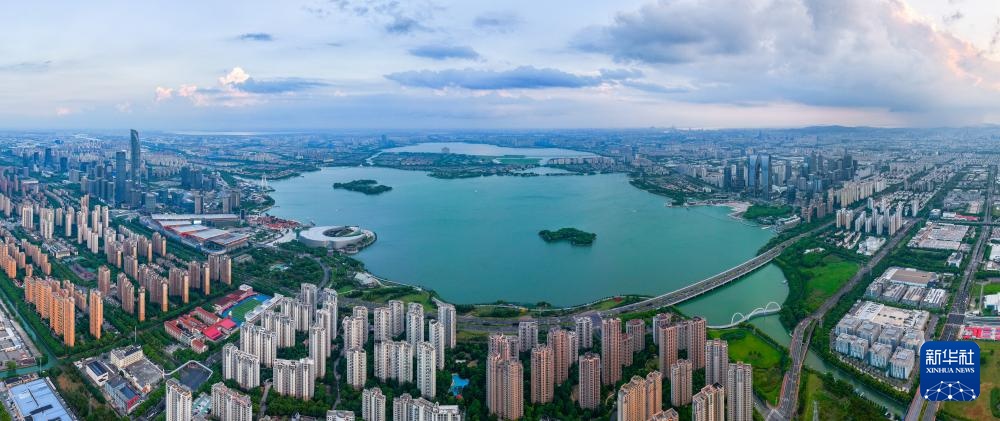 这是8月29日拍摄的苏州金鸡湖(无人机照片)。