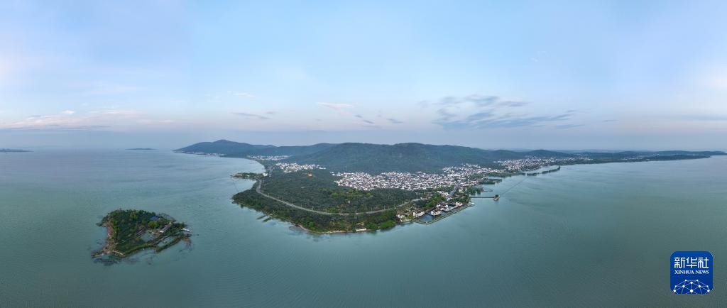 这是4月10日拍摄的苏州市吴中区东山镇太湖景色(无人机照片)。