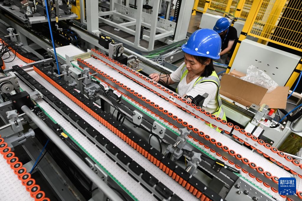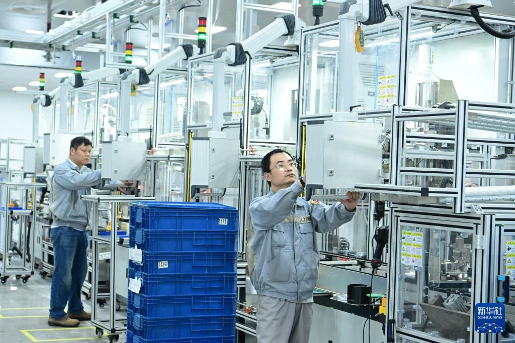 在烽禾升集团昆山总部生产基地,工作人员在安装设备(5月15日摄)。烽禾升集团是一家专注智能制造的自动化设备供应商,是国家高新技术企业、江苏省专精特新中小企业。