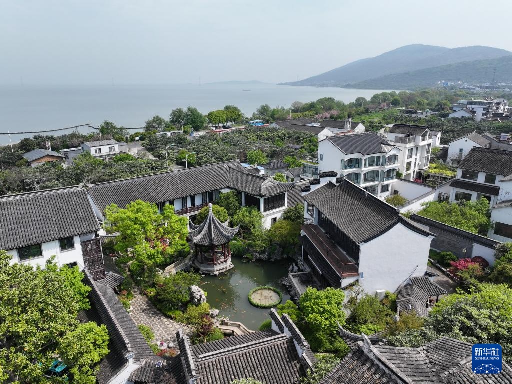这是4月11日拍摄的苏州市吴中区东山镇太湖畔的仁德山庄民宿(无人机照片)。