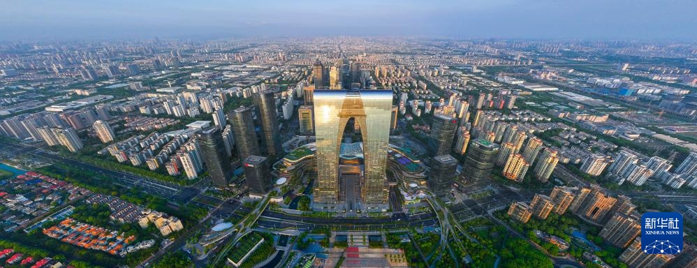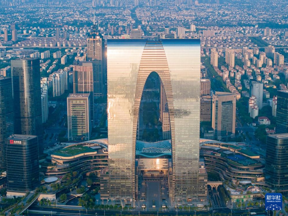 这是8月30日无人机拍摄的苏州工业园区东方之门。