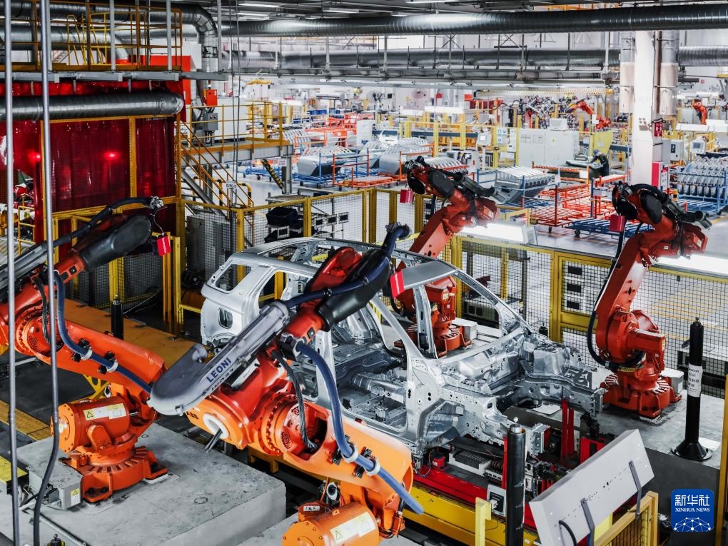 这是6月13日拍摄的奇瑞捷豹路虎汽车有限公司常熟生产基地生产线。