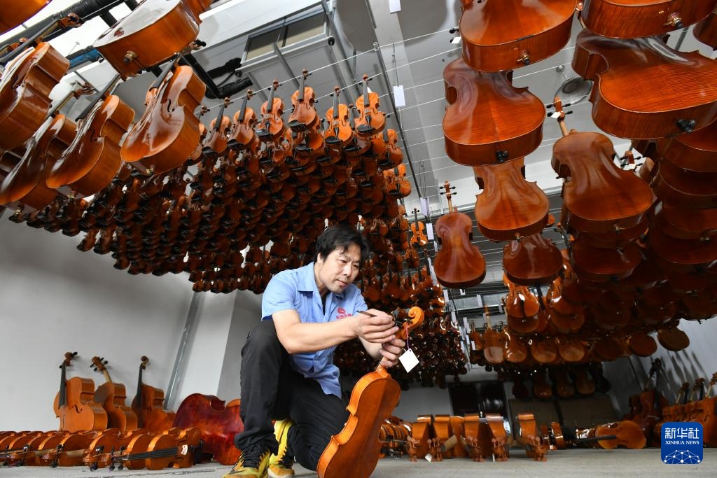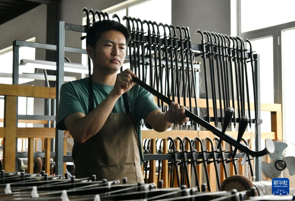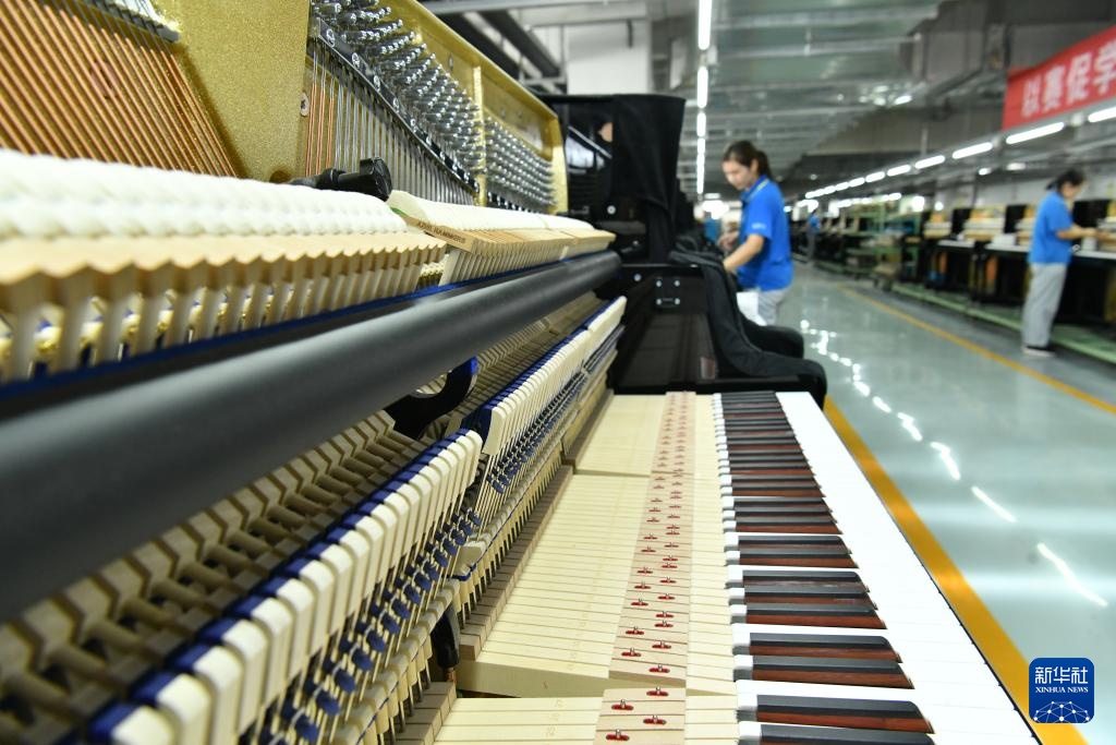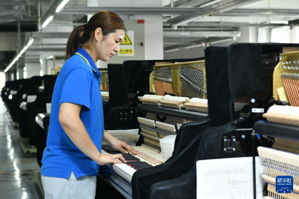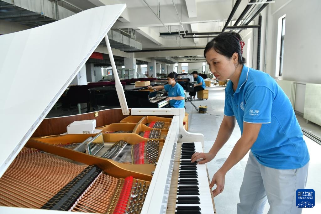 9月11日,位于河北省肃宁县的星海钢琴(河北)有限公司工人在生产车间内检测产品质量。
