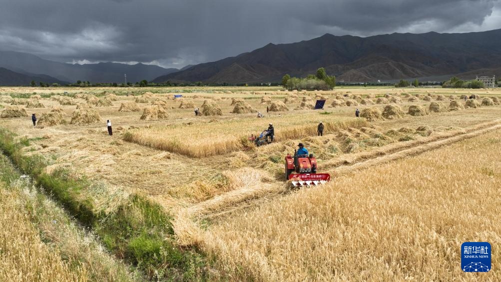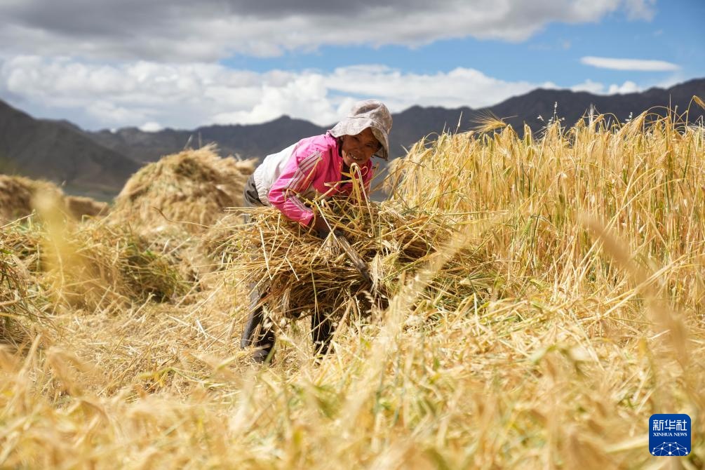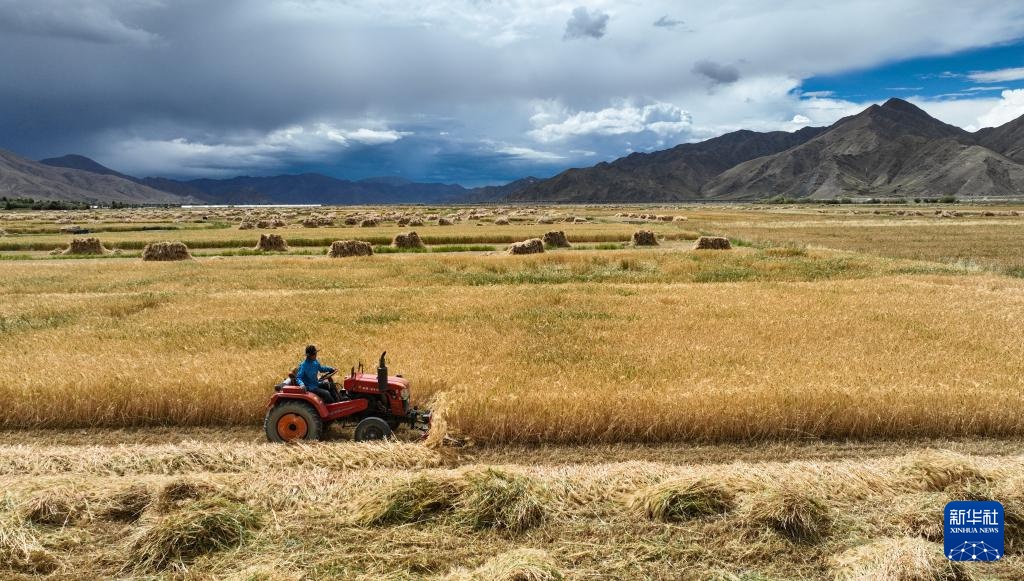 收获季节,享有“西藏粮仓”美誉的日喀则田野一片金黄。在日喀则市白朗县巴扎乡,农民采用机械化、半机械化收割方式,高效收获成熟的青稞。
