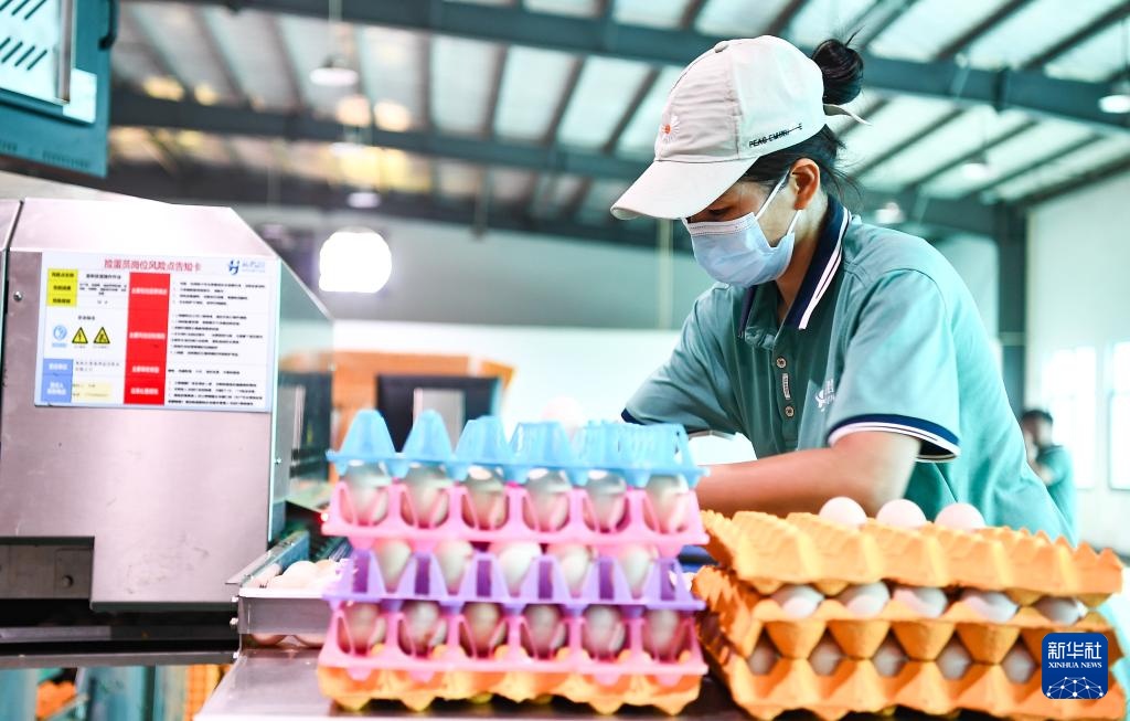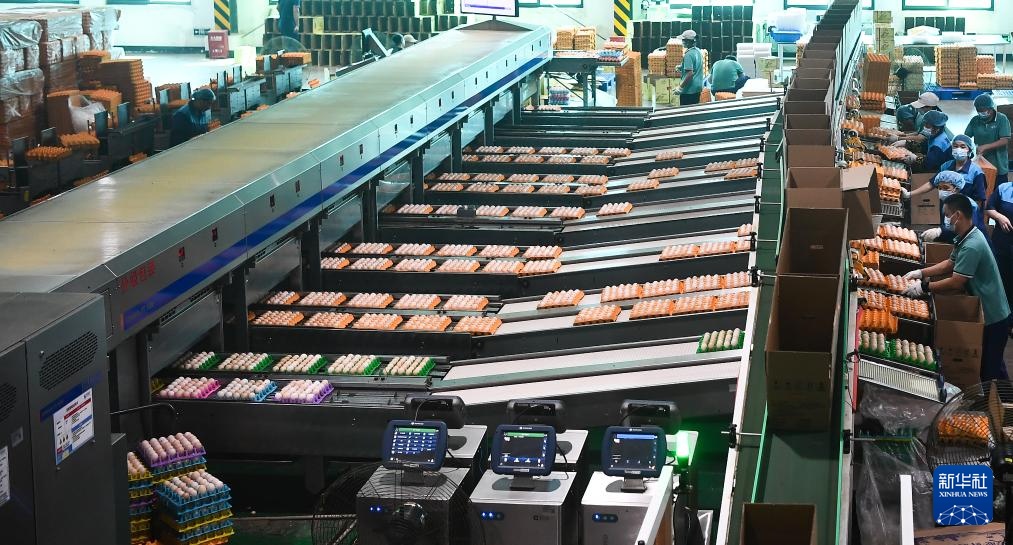 9月9日,工作人员在位于海南省澄迈县福山镇的海南农垦海津益佳牧业有限公司打包鸡蛋。