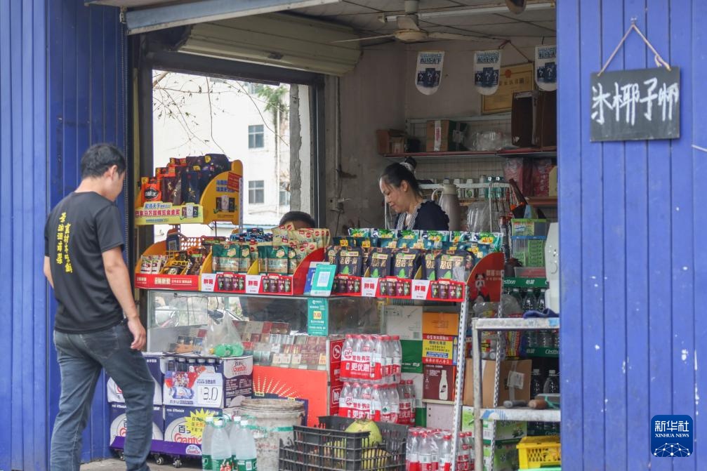 9月11日,市民在海口市街头的一家便利店购物。
