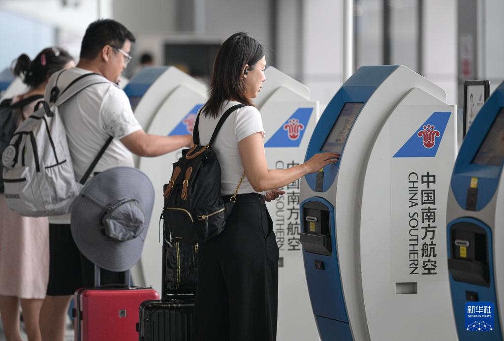 9月11日,旅客在海口美兰国际机场2号航站楼自助办理值机手续。该航站楼目前已恢复使用。