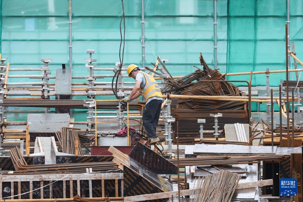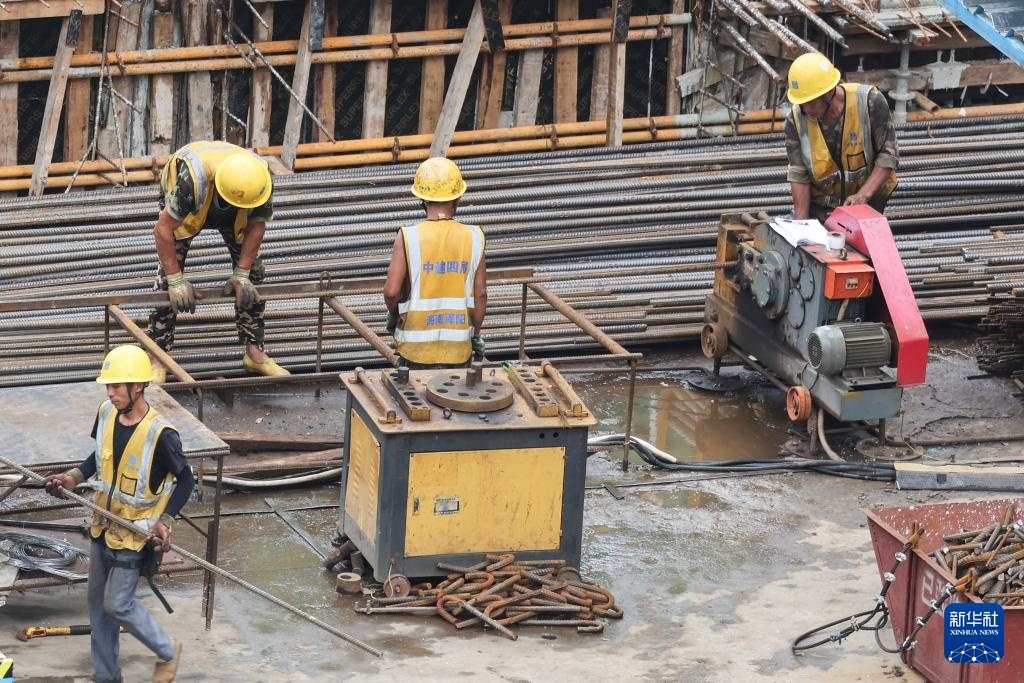 9月11日,工人在海口市华润中心四期项目施工。