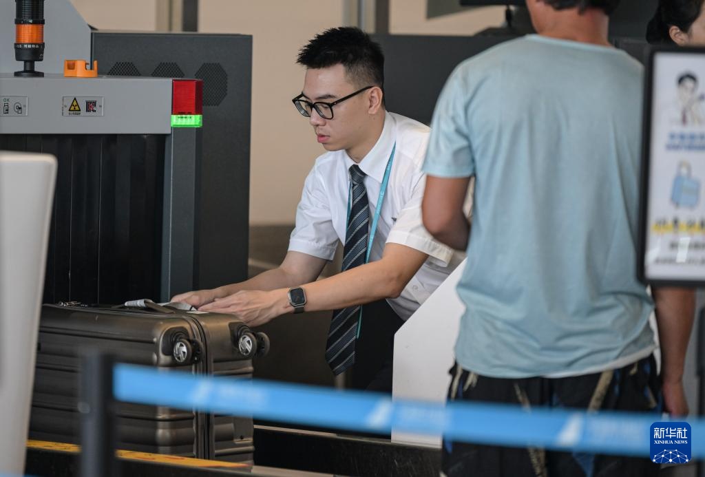 9月11日,南方航空工作人员在海口美兰国际机场2号航站楼为旅客办理行李托运手续。该航站楼目前已恢复使用。